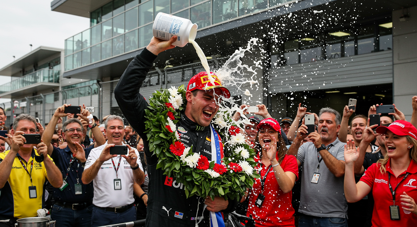 Can you imagine getting out of a hot vehicle after three grueling hours in it and the first thing you drink is…milk? That’s why people wonder why the ‘500 winners drink that following the race. But, it all go started when Louis Meyer drank buttermilk to refresh himself on a hot race day in 1936. An executive with what was then the Milk Foundation was so elated when he saw the moment captured in a photograph in the sports section of his newspaper the following morning that he vowed to make sure it would be repeated in coming years. There was a period between 1947-55 when milk was apparently no longer offered, but the practice was revived in 1956 and has been a tradition ever since.