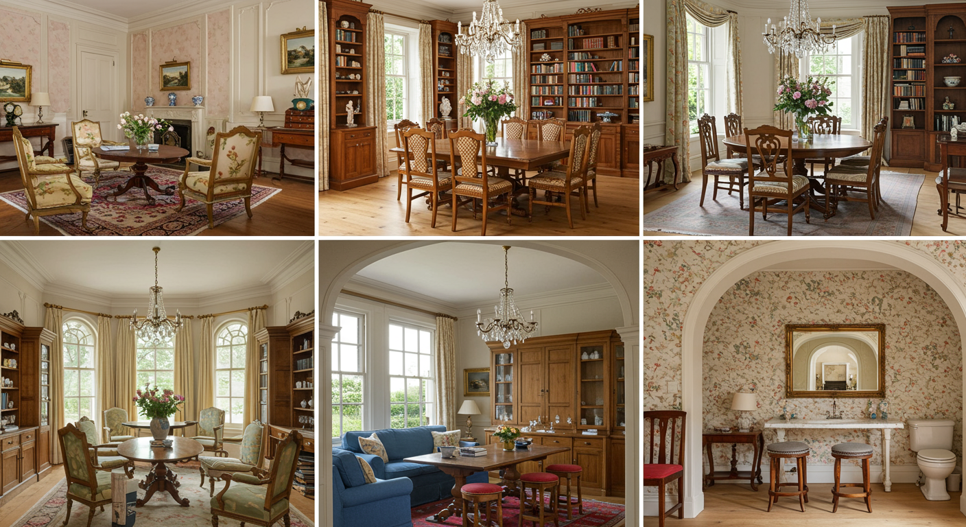 Country French Estate home with impeccable perennial gardens on double lot. Custom designed and built by RJ Klein with architectural reclamation pieces throughout including entry chandelier from original LS Ayres Tea Room and original Walter Knabe custom wall.