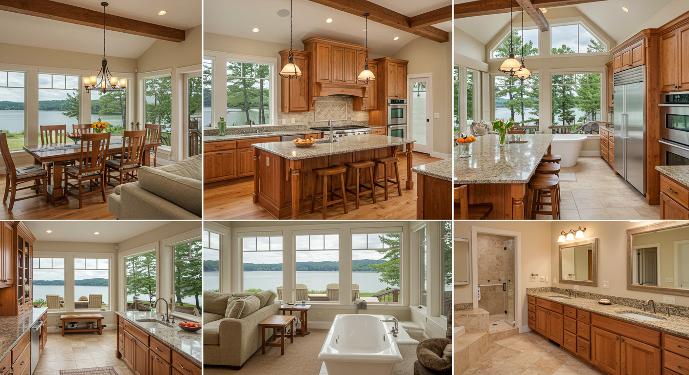 Stunning waterfront home features a glistening pool with fountain feature, multiple decks, patio and private dock boasting breathtaking views of Geist Reservoir! Oversized floor to ceiling windows thru-out open concept main level provide abundance of natural.